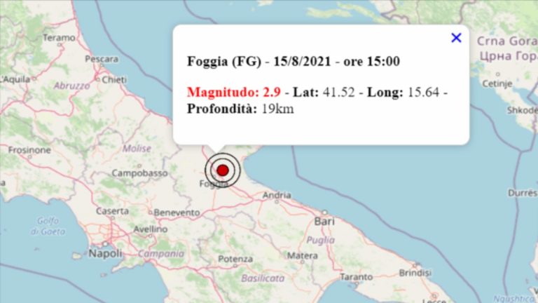 Terremoto Oggi In Puglia Domenica 15 Agosto 2021 Scossa M 2 9 A Foggia Dati Ingv